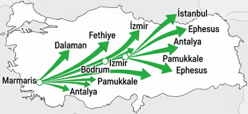 Ulaşım hizmetlerimiz Marmaris merkezli olmak üzere haftanın her günü saat sınırı olmadan Türkiye'nin her noktasına uzman şoförlerimiz ve yüksek modelli Mercedes Vito araçlarımız ile yapılmaktadır. Araçlar yolcularımızın hava ve yol koşullarından etkilenmesi için için özel dizayn edilmiş klimalı ve konforlu araçlardır. Araçlarımız özel sigortalı ve yasal çalışma izin belgelidir. Havalimanlarından transfer istiyorsanız önceden uçağınızın iniş zamanını bildirmeniz yeterlidir. Ulaşmak için sayfalarımızda yer alan "Şimdi ara" ya da "Whatsapp'tan yaz" butonuna tıklamanız yeterlidir.